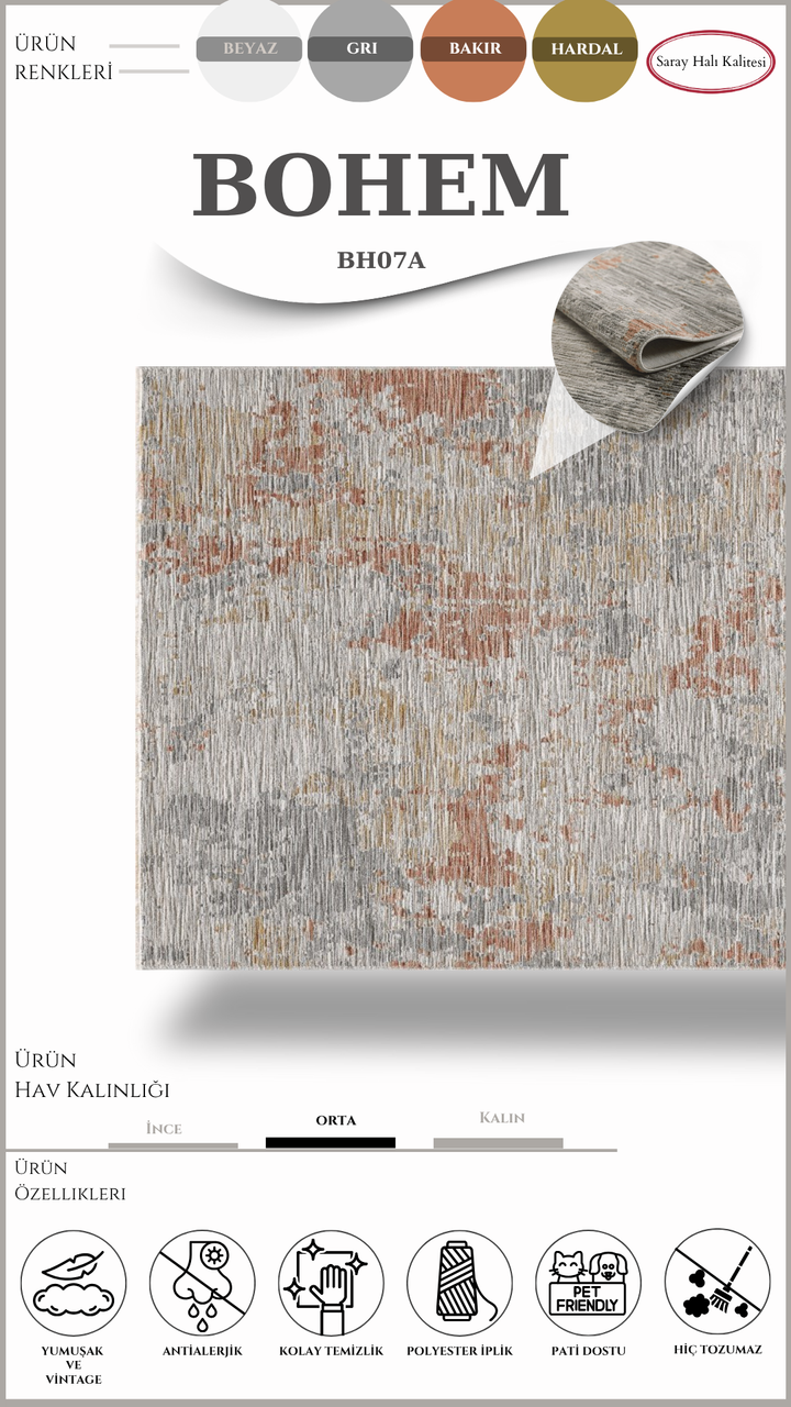 Modern ve Klasik Desenli Özel Efektli Halı BOHEM BH07A