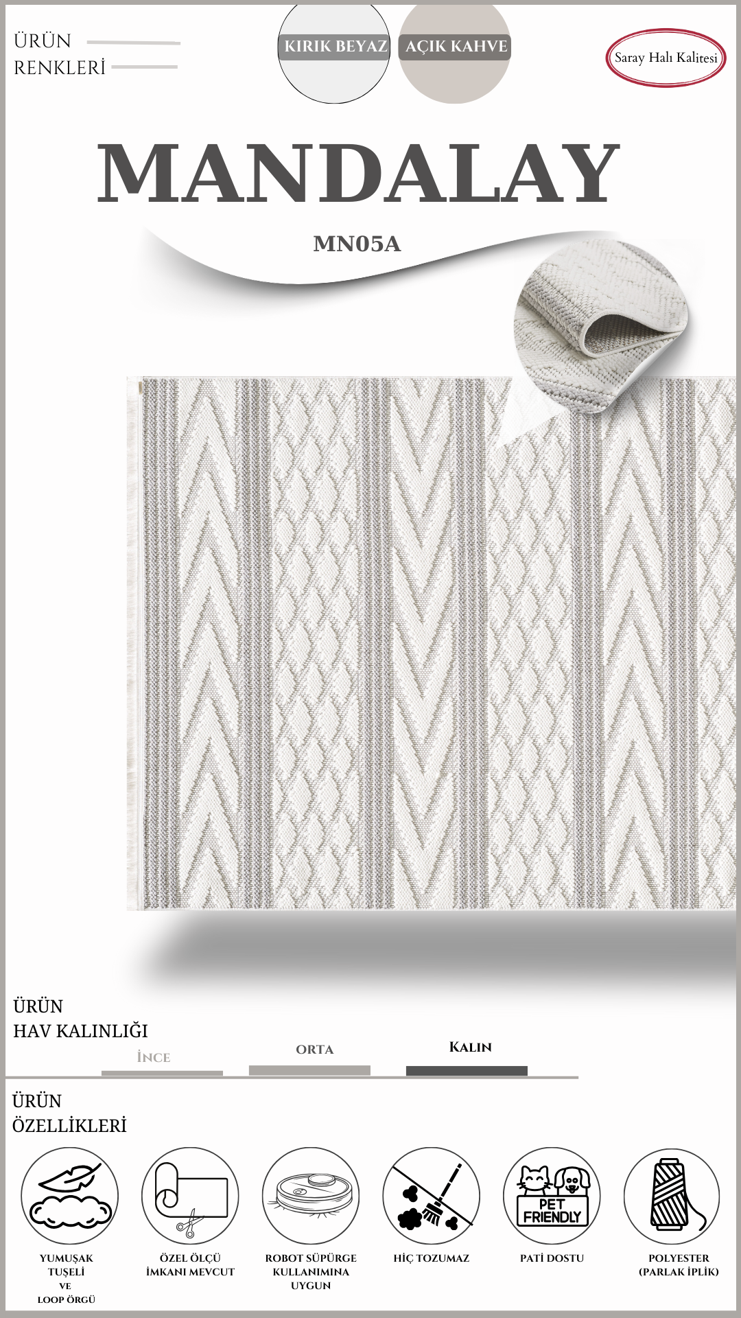 İskandinav Toz Tutmayan Halı Pati Dostu MANDALAY MN05A